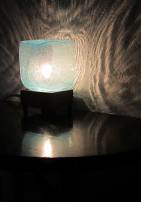 The "FireboxX" series is a new series of table lamps, floor lamps and large totems. The lit cubes are created using a special technique that encapsulates thousands of bubbles. The bubbles in the glass cast a facinating pattern of light on the walls around. These lights vary in sizes ranging from a single six inch cube to an eight foot tall totem with 7 12 inch cubes.