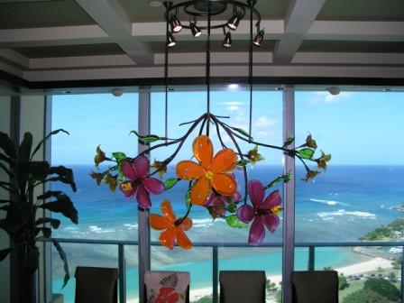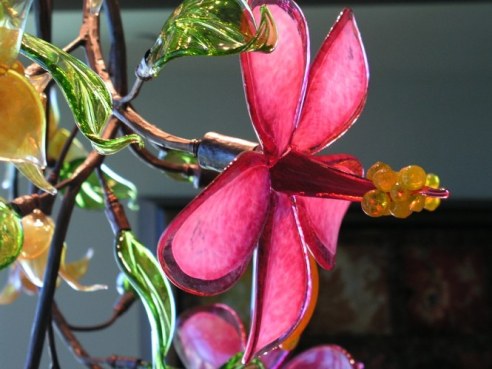 Commissioned Chandelier for private residence: Blown glass flowers, hand